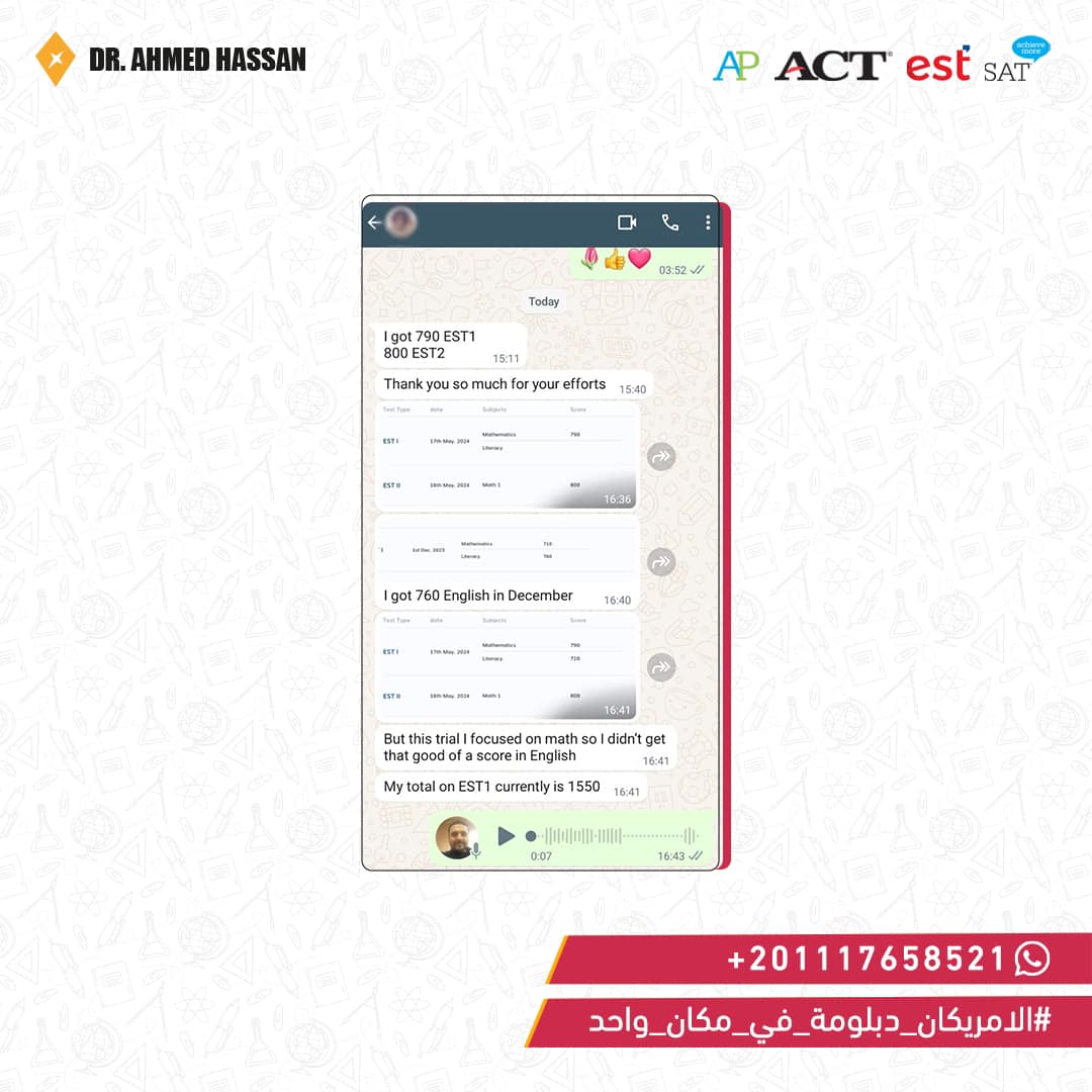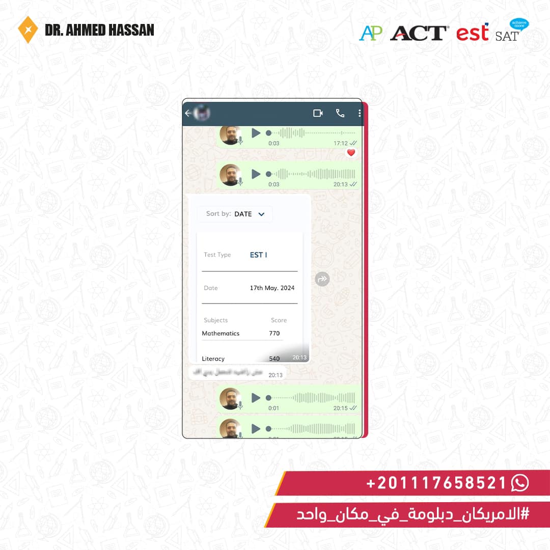 تحضير شامل لاختبارات EST / ACT / SAT مع خطة مذاكرة مُخصصة ودعم مستمر لتحقيق أعلى الدرجات.